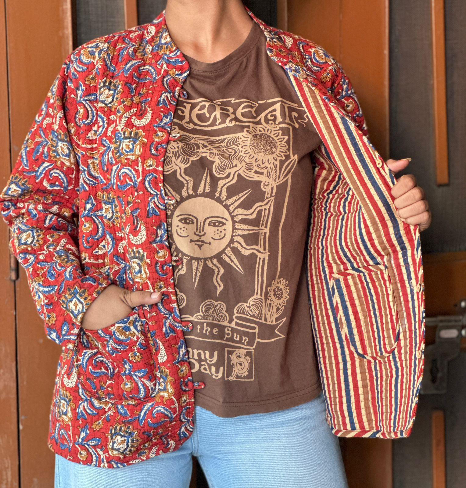 Hand Block Printed Quilted Reversible Short Jackets