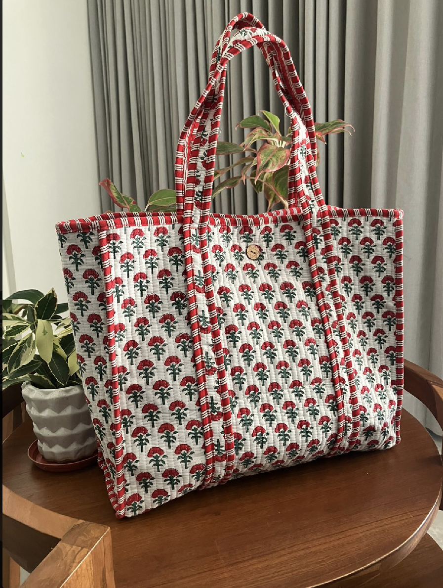 Guldasta ! a Jaipuri block-print tote blooming with delicate floral motifs.