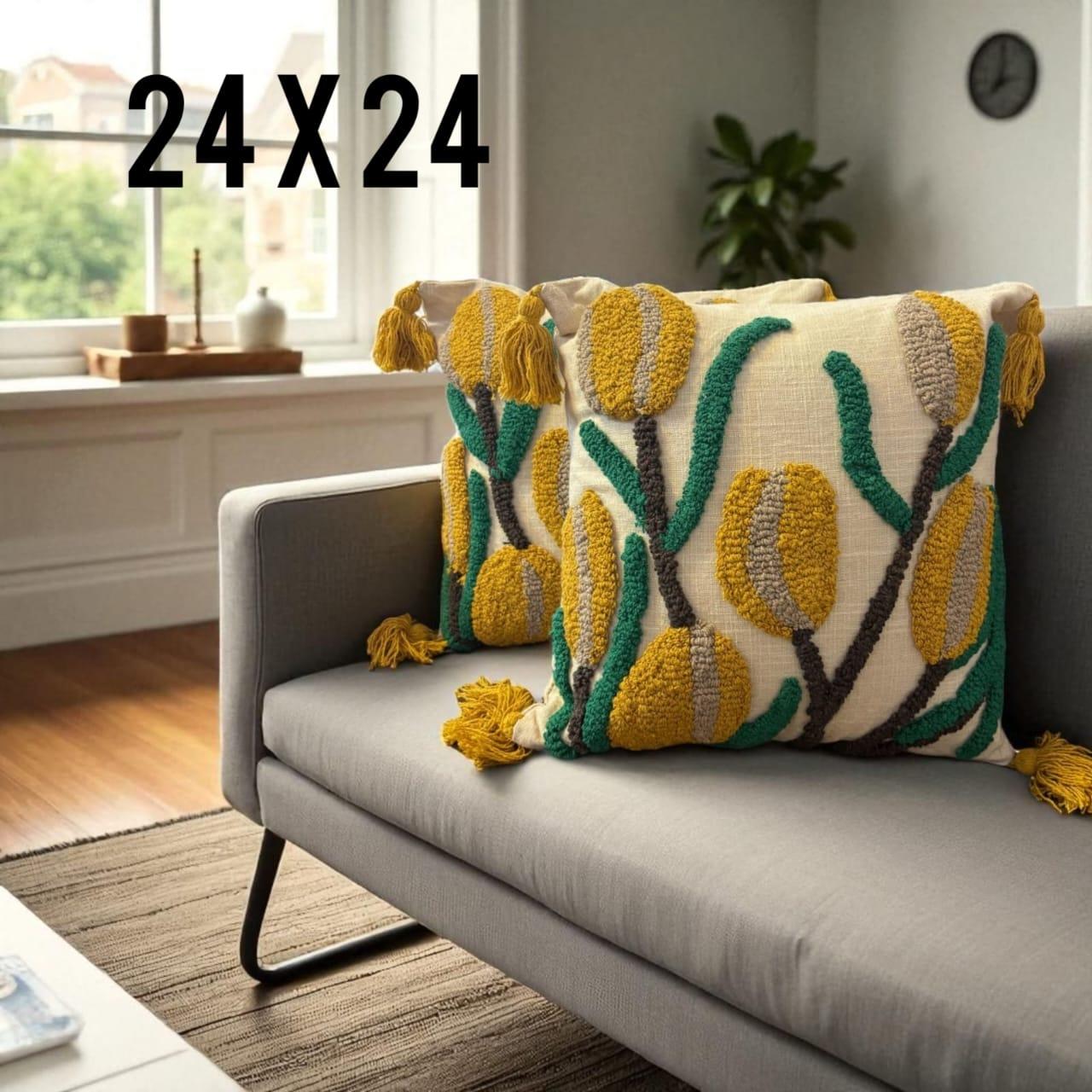 Hand Embroidered Throw Cushion Covers 24×24