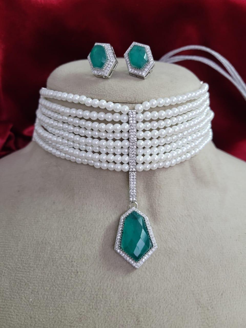 Choker Design: A multi-layered choker crafted with rows of luminous white pearls, offering a regal and sophisticated appeal.