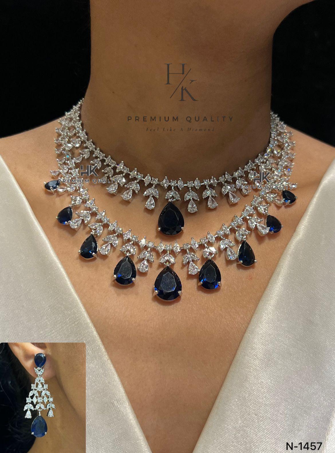 - Design: A two-layered choker-style necklace encrusted with shimmering, high-quality diamond simulants intricately arranged in floral and teardrop patterns.